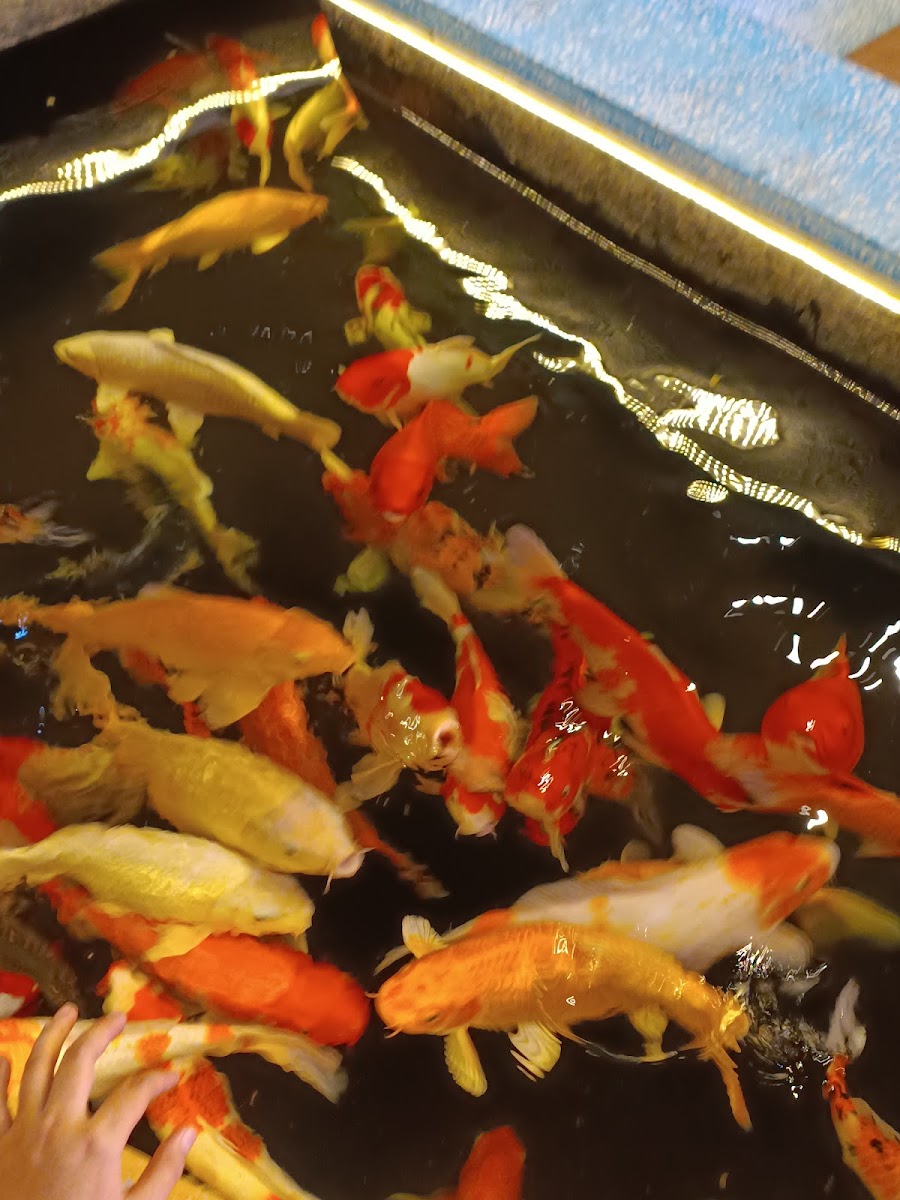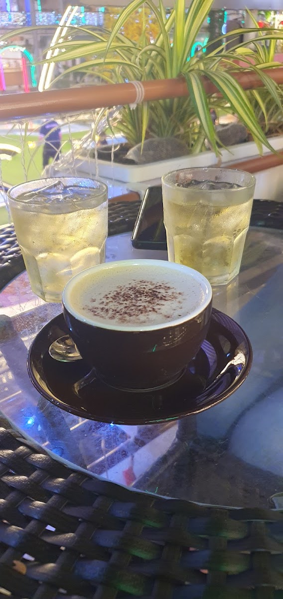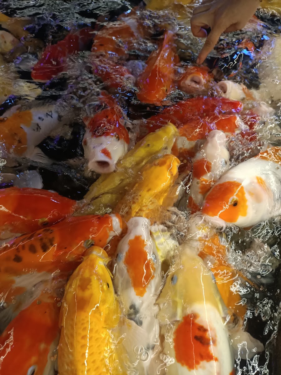 The moment you step inside, the café captivates you with its spacious layout and chic decor. The expansive seating area is thoughtfully designed, offering both cozy corners for intimate chats and open spaces that are perfect for families or gatherings with friends. The highlight? A mesmerizing Koi pond that graces the exterior, allowing you to sip your cup of joe while being serenaded by the tranquil sounds of the water and the gentle movements of the colorful Koi swimming gracefully beneath the surface.